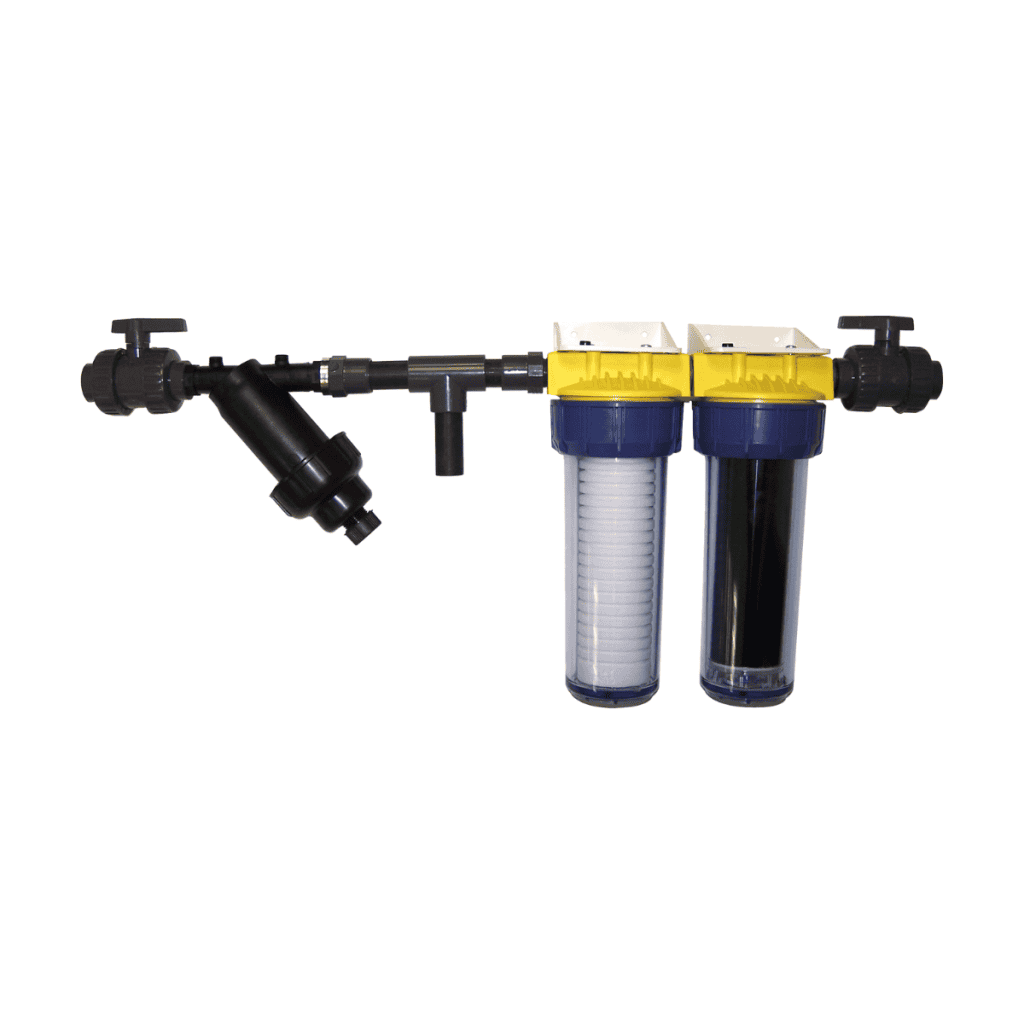 Conçu pour les usages domestiques (chasses d’eau, nettoyage). Il combine un tamis inox 130 µm lavable, une cartouche bobinée 20 µm et un filtre au charbon actif (5 µm). Livré avec vannes ¾’’, fixation murale et clé de serrage. Débit : 1,8 m³/h, performance et praticité au quotidien.